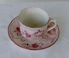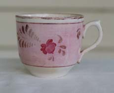Nice pink lustre (luster) cup and saucer, probably mid 19th-century.